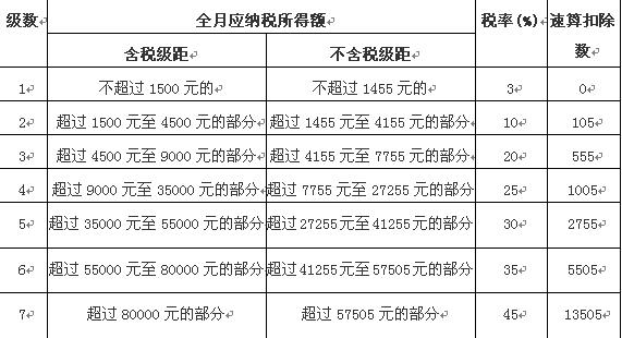 目前,我國個稅起征點是3500,使用超額累進稅率的計算方法如下: