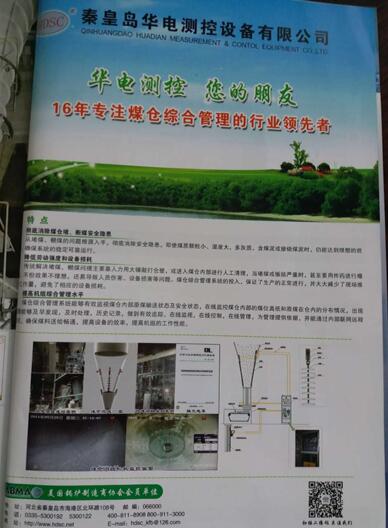 2017年9月,秦皇島華電測控設(shè)備有限公司與《熱力發(fā)電》雜志攜手,為打造權(quán)威交流平臺,在雜志上刊登我公司產(chǎn)品――煤倉綜合管理系統(tǒng)。