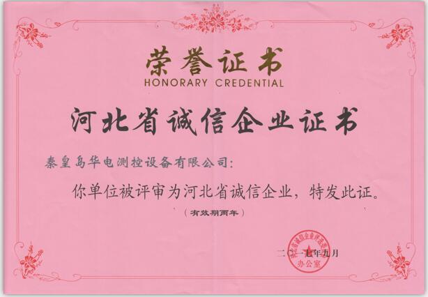 秦皇島華電測控設備有限公司被評為“河北省誠信企業(yè)”;
