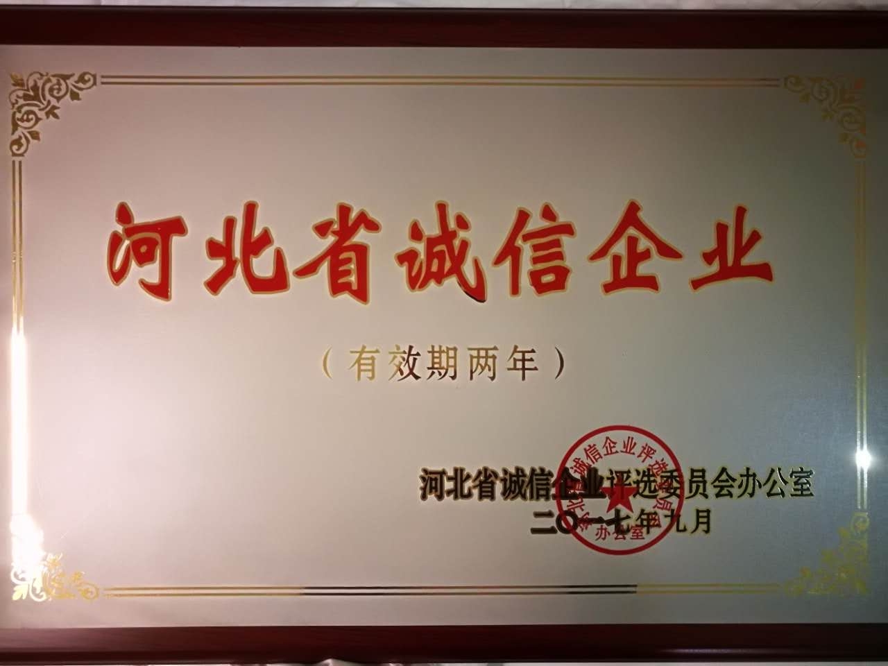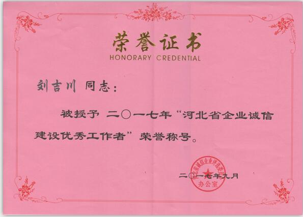 公司總經(jīng)理劉吉川先生被授予2017年“河北省企業(yè)誠信建設優(yōu)秀工作者”榮譽稱號!