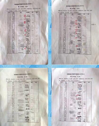 2018年2月,為了不斷提升公司質(zhì)量管理水平,管理部組織公司領(lǐng)導(dǎo)及各部門相關(guān)人員進行ISO9001:2015版質(zhì)量管理體系程序文件、質(zhì)量手冊的學(xué)習(xí),制訂了詳細的學(xué)習(xí)計劃,采用自學(xué)體系文件的方式,并要求涉及到各部門的程序文件同時優(yōu)先學(xué)習(xí),每月25-30日之間組織進行閉卷考試,內(nèi)容涉及到當(dāng)月學(xué)習(xí)內(nèi)容和各部門在工作中息息相關(guān)的內(nèi)容。