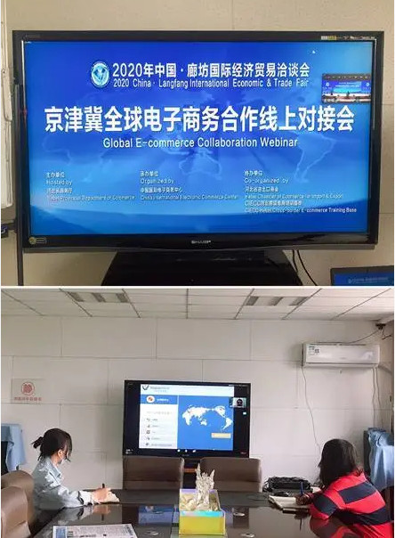 5月18日下午14:00~17:00,由河北省商務(wù)廳主辦、中國國際電子商務(wù)中心承辦的“京津冀全球電子商務(wù)合作線上對接會”,在廊坊京津冀大數(shù)據(jù)創(chuàng)新應(yīng)用中心舉行。在中國國際電子商務(wù)中心、駐華使館、在京電商企業(yè)設(shè)置分會場,以“新動能、新機遇”為主題,通過視頻會議形式開展現(xiàn)場對話。華電測控在秦皇島市商務(wù)局的組織下,在本公司會議室通過網(wǎng)絡(luò)會議系統(tǒng)在線參會。