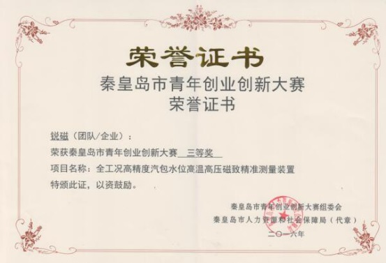 為給用戶提供更好的產(chǎn)品和服務(wù),華電測(cè)控始終致力于產(chǎn)品的研發(fā)和創(chuàng)新。早在2016年5月,公司組建“銳磁”和“新媒體”兩個(gè)團(tuán)隊(duì)參加秦皇島市青年創(chuàng)業(yè)創(chuàng)新大賽,其中“銳磁”團(tuán)隊(duì)的參賽項(xiàng)目為《全工況高精度汽包水位高溫高壓磁致精準(zhǔn)測(cè)量裝置》,“新媒體”團(tuán)隊(duì)的參賽項(xiàng)目為《煤倉(cāng)綜合管理系統(tǒng)》,經(jīng)過不斷開拓創(chuàng)新,兩個(gè)項(xiàng)目先后在市級(jí)、省級(jí)及國(guó)家級(jí)的比賽中連獲殊榮?!度r高精度汽包水位高溫高壓磁致精準(zhǔn)測(cè)量裝置》獲得秦皇島市青年創(chuàng)業(yè)創(chuàng)新大賽三等獎(jiǎng),第二屆“中國(guó)創(chuàng)翼”青年創(chuàng)業(yè)創(chuàng)新大賽高端設(shè)備制造類項(xiàng)“金翼獎(jiǎng)”;《煤倉(cāng)綜合管理系統(tǒng)》獲得秦皇島市青年創(chuàng)業(yè)創(chuàng)新大賽三等獎(jiǎng),河北省青年創(chuàng)業(yè)創(chuàng)新大賽三等獎(jiǎng),第二屆“中國(guó)創(chuàng)翼”青年創(chuàng)業(yè)創(chuàng)新大賽高端設(shè)備制造類項(xiàng)“銀翼獎(jiǎng)”。