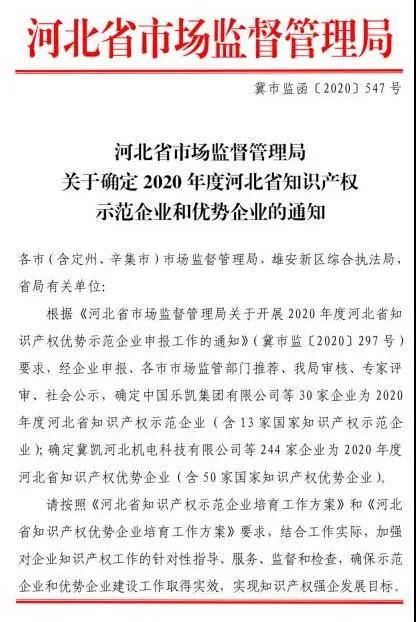 2020年4月,河北省市場監(jiān)督管理局組織申報2020年度河北省知識產(chǎn)權(quán)示范企業(yè)和優(yōu)勢企業(yè),我公司收到通知后,第一時間組織材料,填寫申請,由區(qū)、市知識產(chǎn)權(quán)局推薦、省局審核、專家評審、社會公示的流程,近日獲悉華電測控獲評2020年度河北省知識產(chǎn)權(quán)優(yōu)勢企業(yè)!
