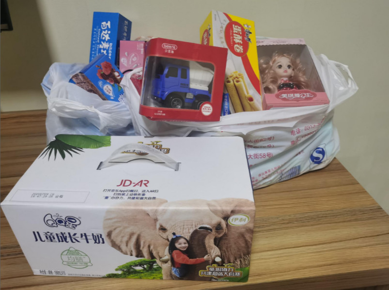 我公司員工發(fā)揚(yáng)華控集團(tuán)大愛(ài)無(wú)疆的精神,李江、李小濱當(dāng)晚在超市購(gòu)買(mǎi)了零食、牛奶、玩具、日用品等。