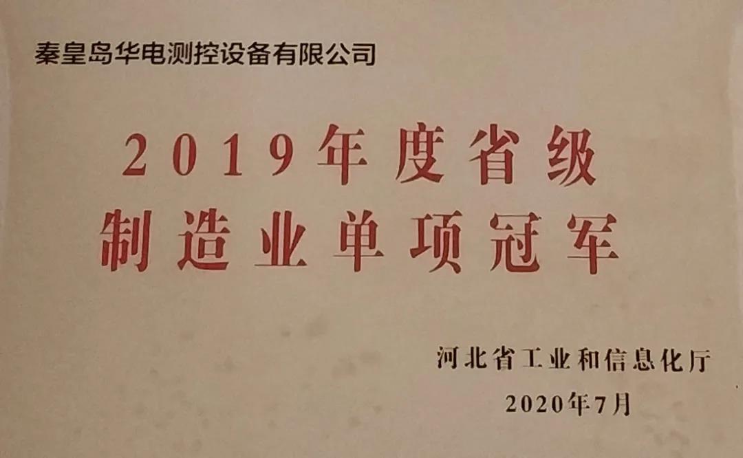 近日,秦皇島華電測控設(shè)備有限公司獲得了由河北省工業(yè)和信息化廳評選的“制造業(yè)單項(xiàng)冠軍”并頒發(fā)了榮譽(yù)證書。