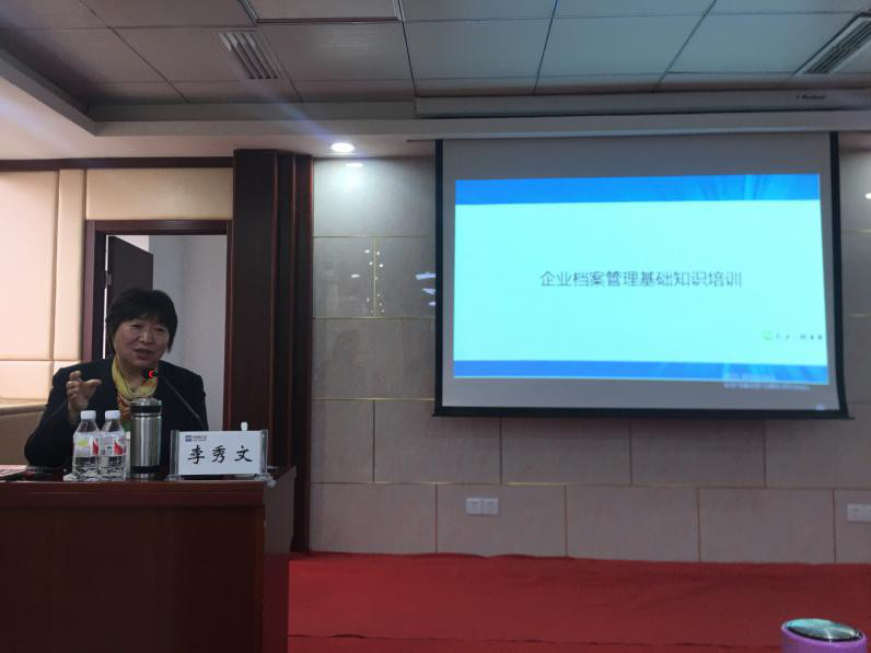 圖為華控集團副總經(jīng)理、副研究館員李秀文講授干部人事檔案管理