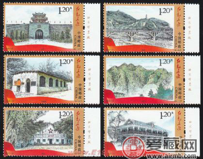 為迎接2012年中國(guó)共產(chǎn)黨第十八次全國(guó)人民代表大會(huì)的召開(kāi),配合紅色旅游,中國(guó)郵政集團(tuán)公司于2012年6月30日發(fā)行了《紅色足跡》特種郵票一套。2012年6月30日,“紅色足跡”特種郵票首發(fā)式在井岡山舉行。2012-14《紅色足跡》特種郵票?小版張一共有六枚郵票組成,分別是井岡山、瑞金、遵義、會(huì)寧、延安、西柏坡六處老革命根據(jù)地的圖案,面值全部是1.20元,設(shè)計(jì)者是巧妙的運(yùn)用了這種鋼筆淡彩的手法,將每一處根據(jù)地完美的展現(xiàn),并且還是小版張郵票,無(wú)論是從設(shè)計(jì)、題材、形式方面來(lái)看,這都是一套極有價(jià)值的郵票,所以收藏者一直對(duì)它的熱度沒(méi)有減少。