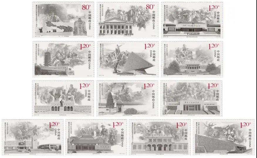 2015年9月3日上午,《中國(guó)人民抗日戰(zhàn)爭(zhēng)暨世界反法西斯戰(zhàn)爭(zhēng)勝利七十周年》紀(jì)念郵票首發(fā)式在西安市郵政公司舉行,本套郵票共13枚,小型張1枚。全套郵票面值為20.8元?!吨袊?guó)人民抗日戰(zhàn)爭(zhēng)暨世界反法西斯戰(zhàn)爭(zhēng)勝利七十周年》紀(jì)念郵票,是我國(guó)歷次紀(jì)念抗戰(zhàn)勝利題材郵票當(dāng)中發(fā)行枚數(shù)最多的一套。郵票內(nèi)容分別為:1.“九一八”歷史博物館;2.東北烈士紀(jì)念館;3.中國(guó)人民抗日戰(zhàn)爭(zhēng)紀(jì)念館;4.上海淞滬抗戰(zhàn)紀(jì)念館;5.侵華日軍南京大屠殺遇難同胞紀(jì)念館;6.臺(tái)兒莊大戰(zhàn)紀(jì)念館;7.延安革命紀(jì)念館;8.八路軍總部舊址紀(jì)念館;9.百團(tuán)大戰(zhàn)紀(jì)念館;10.平型關(guān)大捷紀(jì)念館;11.冉莊地道戰(zhàn)紀(jì)念館;12.新四軍紀(jì)念館;13.滇西抗戰(zhàn)紀(jì)念館。小型張畫(huà)面以《大刀進(jìn)行曲》雕塑、長(zhǎng)城、紅綢、和平鴿為主要元素,與中國(guó)人民抗日戰(zhàn)爭(zhēng)暨世界反法西斯戰(zhàn)爭(zhēng)勝利七十周年紀(jì)念活動(dòng)標(biāo)識(shí)相互呼應(yīng),融為一體。