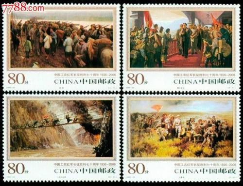 國家郵政局于2006年10月22日發(fā)行了《中國工農(nóng)紅軍長征勝利七十周年》紀(jì)念郵票1套4枚,小型張1枚。志號:2006-25。全套面值:3.20元。設(shè) 計(jì) 者:郝旭東。