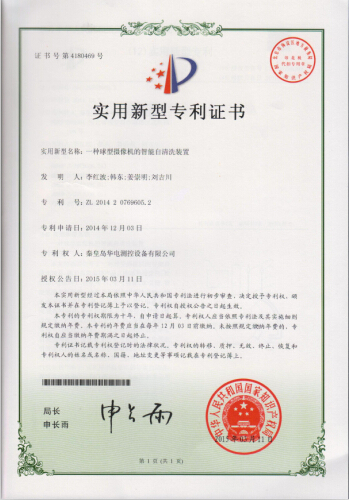 公司于2014年12月03日提交的“一種球型攝像機的智能自清洗裝置”專(zhuān)利已被中華人民共和國國家知識產(chǎn)權局頒發(fā)專(zhuān)利證書(shū)。