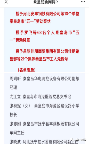 4月26日,秦皇島市“五一”勞動(dòng)獎(jiǎng)狀、“五一”勞動(dòng)獎(jiǎng)?wù)潞凸と讼蠕h號(hào)揭曉,秦皇島華電測(cè)控集團(tuán)有限公司常務(wù)副總經(jīng)理周明昕同志被授予2022年秦皇島市“五一”勞動(dòng)獎(jiǎng)?wù)路Q號(hào)。獲此殊榮,華電測(cè)控集團(tuán)全體員工向周明昕同志表示祝賀!