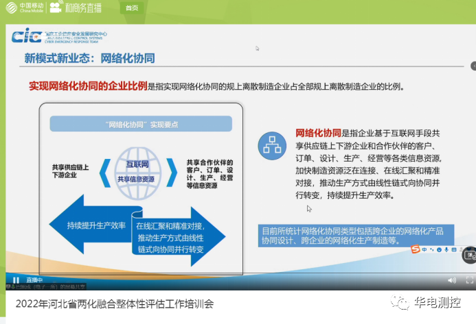2022年4月27日,為進(jìn)一步落實(shí)《河北省信息化與工業(yè)化深度融合發(fā)展“十四五”規(guī)劃》要求,全面掌握我省工業(yè)企業(yè)與重點(diǎn)特色產(chǎn)業(yè)集群兩化融合現(xiàn)狀和發(fā)展趨勢(shì),推動(dòng)新一代信息技術(shù)與實(shí)體經(jīng)濟(jì)深度融合,促進(jìn)企業(yè)轉(zhuǎn)型升級(jí)、提質(zhì)增效,河北省工作和信息化廳組織開展《2022年兩化融合整體性評(píng)估工作培訓(xùn)》會(huì)議,各市、縣(區(qū))工信部門兩化融合相關(guān)負(fù)責(zé)人,規(guī)模以上工業(yè)企業(yè)、“專精特新”中小企業(yè)等信息化負(fù)責(zé)人參加。華電測(cè)控集團(tuán)經(jīng)管管理部副經(jīng)理賁偉、鄭穎參加了此次培訓(xùn)。