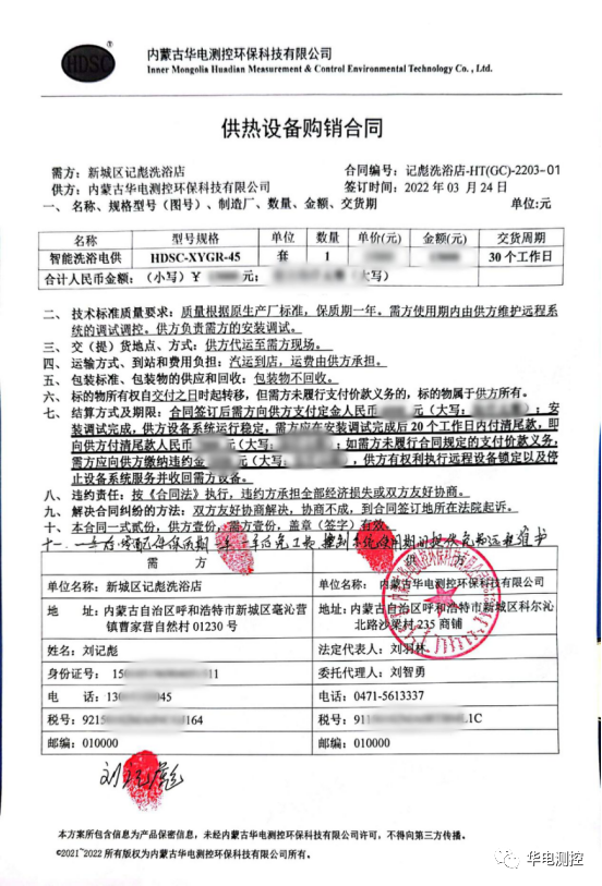 2022年3月24日,內(nèi)蒙古華電測控環(huán)??萍加邢薰九c呼和浩特市某洗浴店成功簽約智能洗浴電供熱系統(tǒng)項(xiàng)目,這是繼上一次某洗浴中心供熱項(xiàng)目安裝完成后的又一喜訊!本次合同的簽訂,將進(jìn)一步凸顯公司自動(dòng)化控制的優(yōu)勢,為內(nèi)蒙古公司在國內(nèi)市場加快推廣和開展多元化業(yè)務(wù)帶來了積極作用。
