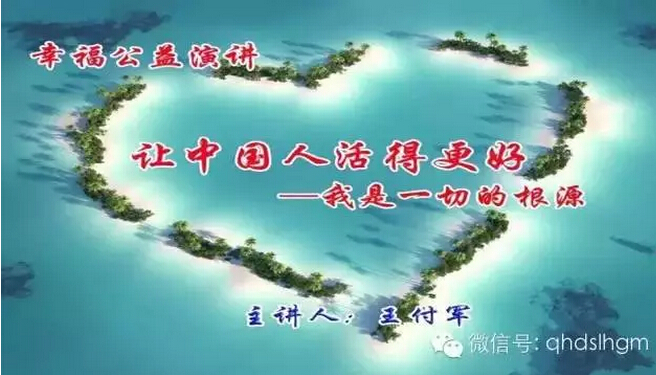 王付軍老師“我是一切的根源”幸福人生公益演講主要劃分為幾個部分(一、事業(yè)、財富、關(guān)系、境遇;二、快樂、幸福、愛、健康;三、養(yǎng)生;四、輕松快樂做老板;五、大學(xué)生如何實現(xiàn)自己的理想)。因為本次活動時間有限,只能從第一部分,即事業(yè)、財富、關(guān)系、境遇幾個方面,通過王老師親身體驗、感悟與收獲,幫助朋友們進(jìn)一步認(rèn)識、理解和體會“我是一切的根源”。