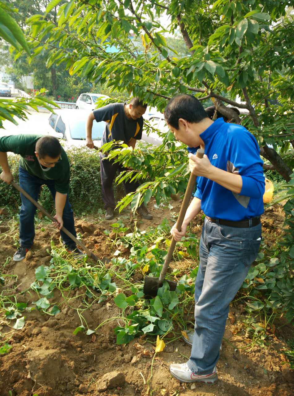 黨員同志們不怕苦,不怕臟,用鐵鍬等工具對生產(chǎn)車間門前的花壇翻整,并采摘了花壇中的白薯。炎炎烈日下,映著黨員們辛勤的汗水,一顆顆白薯顯得分外飽滿,也見證了黨員們的付出與收獲。同時,老黨員號召同志們發(fā)揚艱苦樸素的精神,將白薯秧進行采摘,作為憶苦思甜的晚飯。