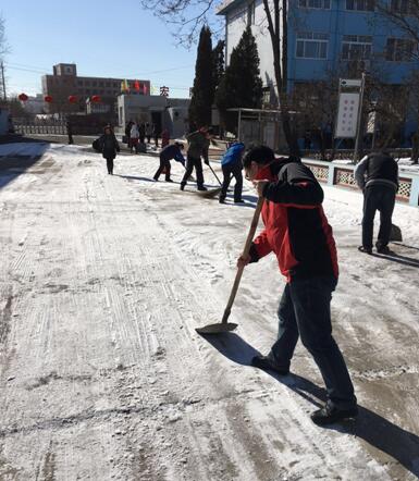 公司全體員工參與了掃雪工作,大家手持鐵鍬、掃把,干勁十足,很快便將一條條通道和人行道上的積雪清掃干凈。盡管今天的天氣依舊寒冷,并不時(shí)地刮著風(fēng),大家的手和臉都凍得通紅,但是這一切絲毫沒有影響大家們的熱情和效率,大家團(tuán)結(jié)協(xié)作,頂著寒風(fēng),將積雪清掃干凈。掃除中大家配合默契,相互替換,干地?zé)峄鸪臁?/FONT>
