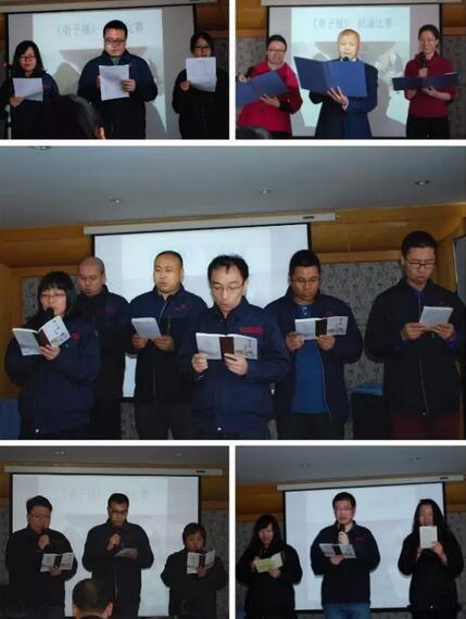 此次朗誦比賽高潮迭起、異彩紛呈,各個部門在選材、朗誦形式、服裝隊形等方面別出心裁、力求不凡:國貿部學貫中西,用中英雙語朗誦了《弟子規(guī)》,讓人眼前一亮;工程部借著快板演出,鏗鏘有力地朗誦,將比賽推向高潮;管理部更是將《弟子規(guī)》帶入了家庭,開場就是子女的誦讀錄音,伴著統(tǒng)一的傳統(tǒng)服飾,一出場就讓古韻流淌、文化傳承……每個部門都用自己的方式詮釋了《弟子規(guī)》的內涵,每個節(jié)目都發(fā)人深思。這些精彩的節(jié)目源自于大家對《弟子規(guī)》精神的深入理解和持續(xù)踐行。最終,工程部脫穎而出,獲得了本次比賽的一等獎,管理部和生產部也分獲二、三等獎。