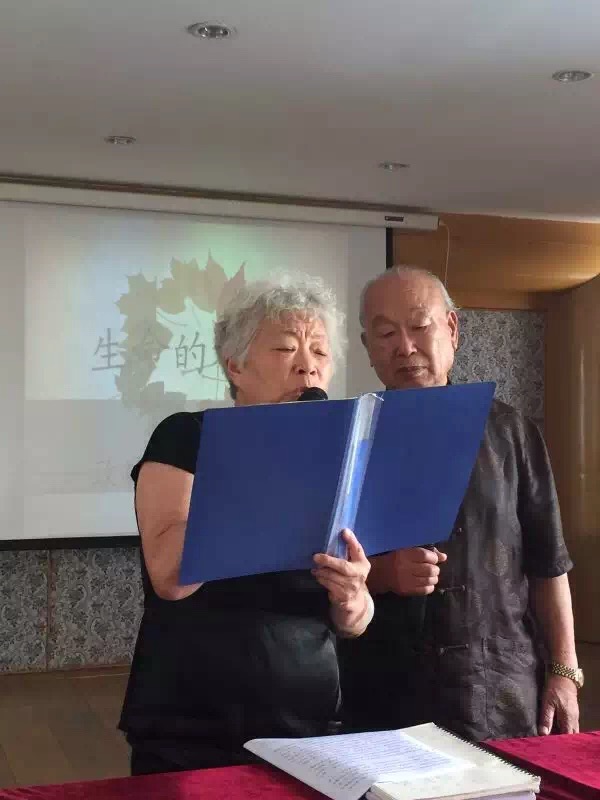 楊姨盡管已是80高齡,但精神矍鑠,聲音洪亮,腰板挺直,乍看像60來(lái)歲的人。她與高齡83歲的愛(ài)侶攜手前來(lái),盈盈淺笑,光彩照人,見(jiàn)之忘憂。她和老伴朗誦了他們共同寫就的詩(shī),《寫給老伴的悄悄話》,聲情并茂,場(chǎng)面感人。然后,楊女士用中、英雙語(yǔ)作了自我介紹,語(yǔ)言流利,悅耳動(dòng)聽(tīng)。