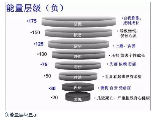 戴維.霍金斯發(fā)現,凡是生病的人一般都用負面的意念,他們喜歡抱怨、指責、仇恨別人,不斷指責別人過程當中就消減自己很大的能量。這些意念的振動頻率低于200。這些人容易得很多不同的疾病。