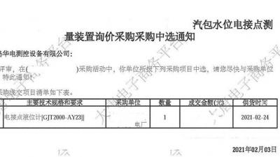2021年2月3日,我公司在大唐集團(tuán)安徽某電廠的電接點(diǎn)液位計改造項(xiàng)目的競標(biāo)中,憑借強(qiáng)大的綜合實(shí)力以及過硬的產(chǎn)品質(zhì)量,通過層層篩選、激烈角逐,以絕對的優(yōu)勢順利中標(biāo)。 該項(xiàng)目采用公開招標(biāo)方式,我公司自收到招標(biāo)信More